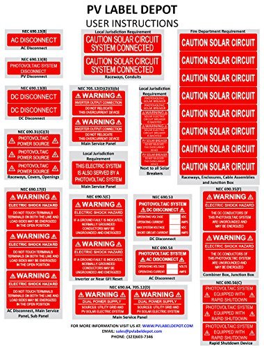 Upgrade your 40 panel solar system with our Premium UV Resistant Photovoltaic Safety Warning Labels, designed to ensure compliance and safety. These labels are not just a requirement but a necessity for any solar installation, providing clear warnings and instructions for rapid shutdown procedures. Crafted to meet the highest standards, they are an essential component for maintaining the safety and efficiency of your solar energy system.