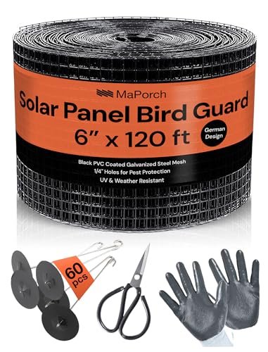 Protect your solar investment in Brisbane with the MaPorch 6″x120FT PVC Coated Galvanized Steel Black Solar Panel Bird Proofing Mesh Screen. Designed to offer superior protection against birds and squirrels, this kit ensures your solar panels remain free from damage and debris caused by nesting critters. Ideal for homeowners in Brisbane looking for an effective bird proofing solar panels solution, our kit includes everything you need for a quick and easy installation.