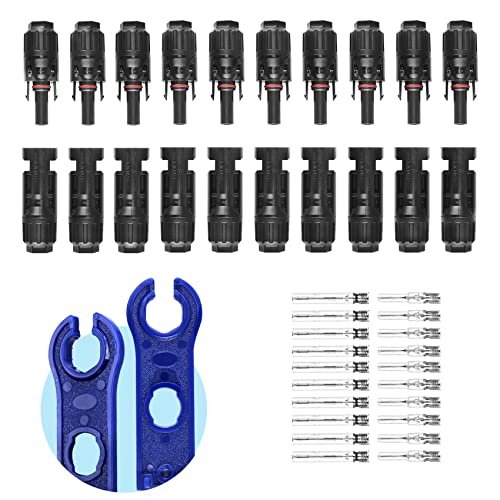– Package Contents: 10 pairs solar panel connectors Male & Female + 10 pairs solar connector pins (male & female) + 2pcs spanners.