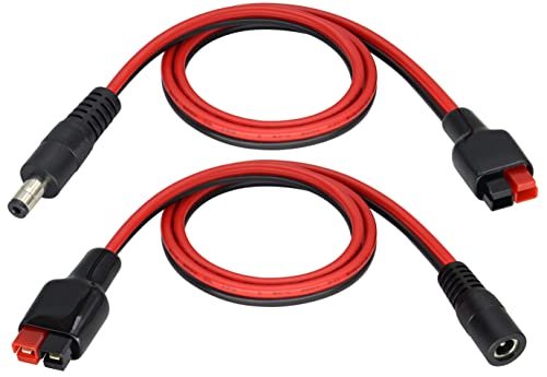 – Connectors: One end features an Anderson connector (red for positive, black for negative), the other end has a DC5521 male plug