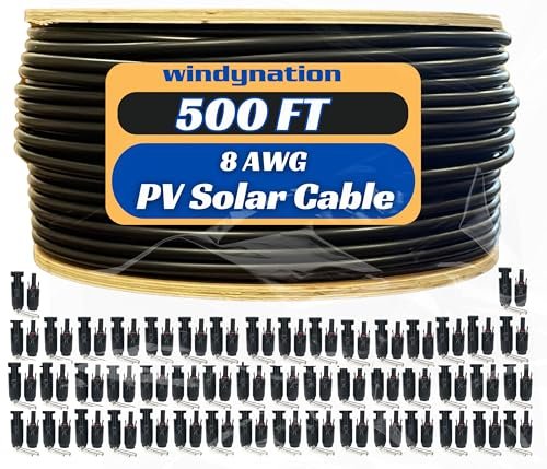 Brand:WindyNation | Color:Black w/ 50 Pairs of PV Connectors | Voltage:600 Volts | Material:Copper | Gauge:8.0