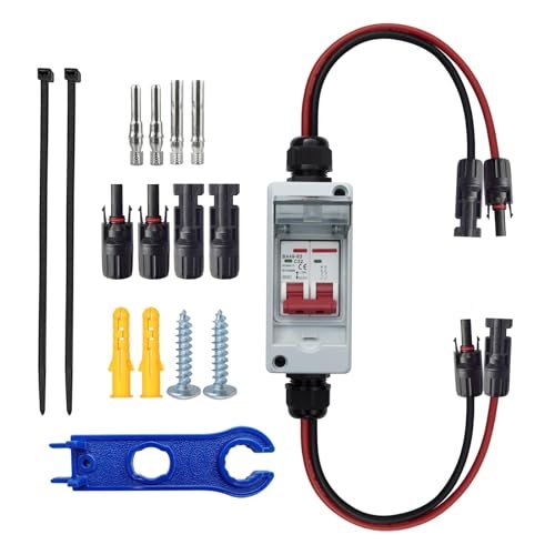 Designed for versatility, the EcoPower Disconnect Switch is suitable for a wide range of applications, including solar power systems, photovoltaic arrays, RVs, and boats. Its waterproof and fireproof design ensures effective protection in harsh weather conditions, making it reliable for both indoor and outdoor use. The plug-and-play feature simplifies installation, offering a safe and effective solution for connecting solar panels. With its high carrying capacity and strong stability, this disconnect switch is a must-have for anyone looking to enhance their 100 amp solar panel system’s safety and efficiency.