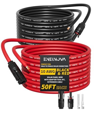 ENERNOVA 50 Feet 10AWG Solar Panel Extension Cable 50 ft with Female and Male Connectors Free Extra Pair Solar Wire 50FT Red and 50FT Black