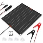 MHPOWOS 20W 12V Solar Car Battery Charger Waterproof Solar Trickle Battery Charger & Maintainer for Car Boat Automotive RV with Alligator Clip