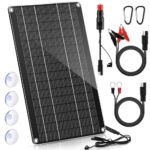 Saillong 10W Solar Panel 12V Solar Car Battery Charger Maintainer with Cigarette Lighter Plug and Alligator Clips for Vehicles Boats and RVs