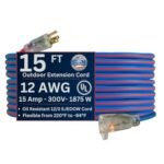 US Wire and Cable 12 3 Gauge 15 Foot Heavy Duty Extension Cord for Generator Use Extreme Cold Weather Resistant with Lighted Plug